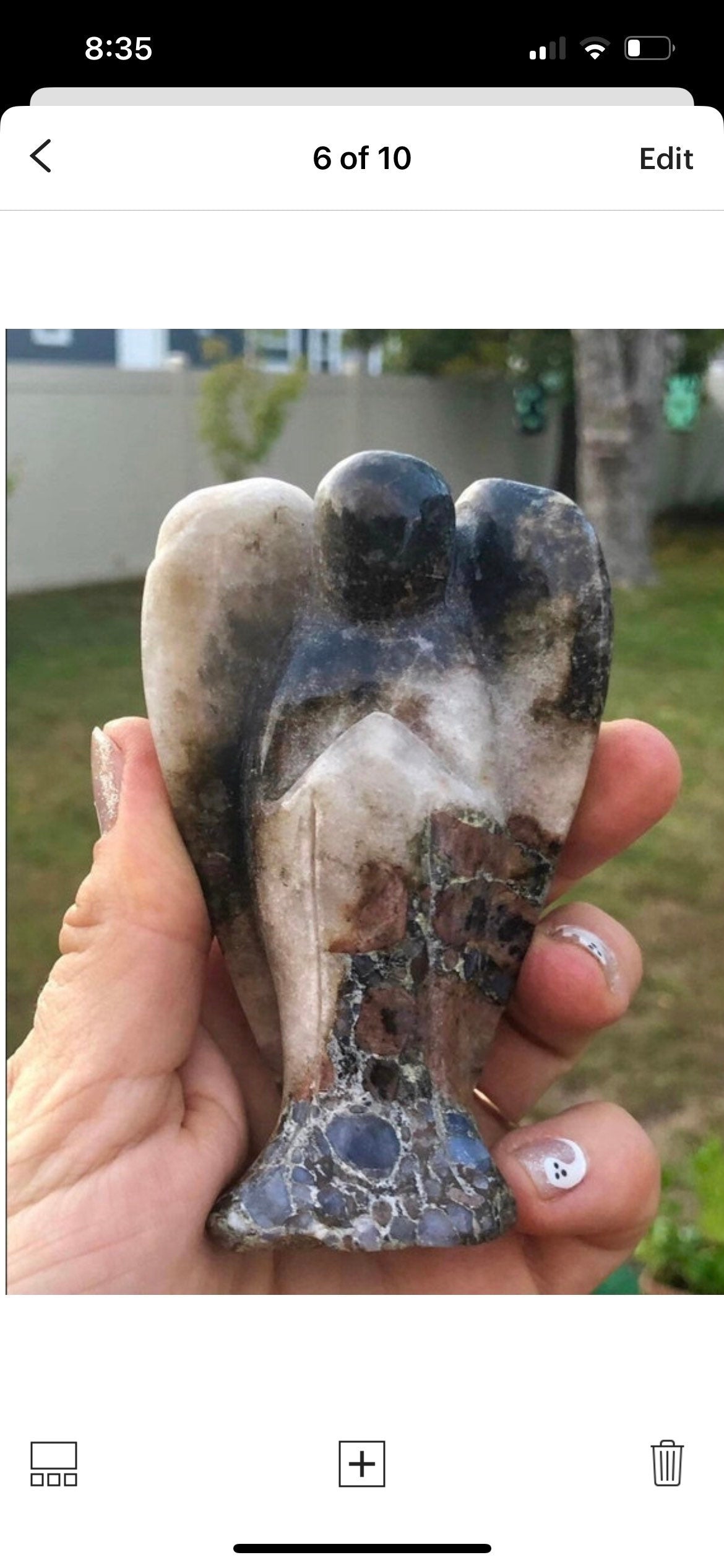 Stunning (1) QUE SERA angel, blue labradorite HELLO KITTY, (1) MOSS AGATE leave, (3)chrysocolla squares, (1) greeen sphere, (3) multicolor stars, 1 lb Ruby fushite chips, (9 assorted PALMSTONES!!